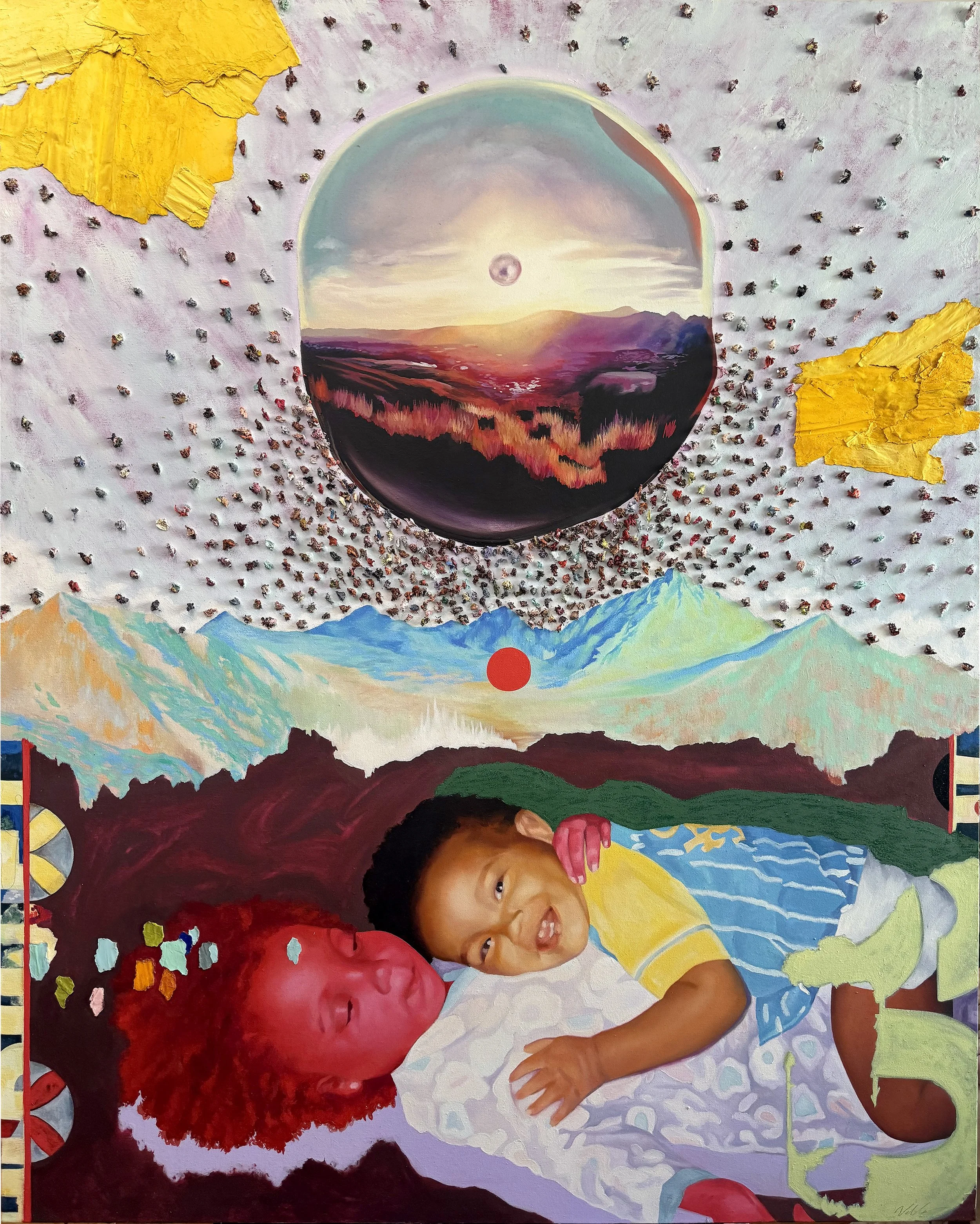 I started this piece by observing my brother and I as 2 kids set out to play the game of life. Itโs like our souls agreed to share a childhood in the same bubble of reality, but our choices later lead us down different paths. As Iโm retracing memories, Iโm finding him again through these paintings but with a new lens.โ -Cassinova