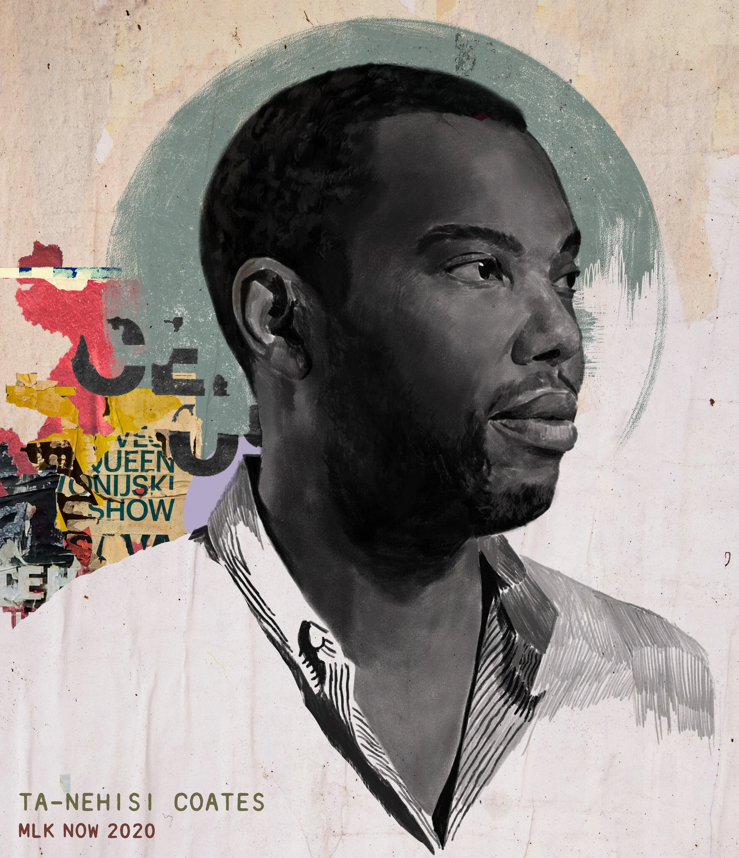 illustration portraits for Ava Duvernay, Ryan Coogler, Michael B Jordan, Ta-Nehisi Coates, Alexandria Ocasio-Cortez, Common, Cicely Tyson, and Dr. Martin Luther King for Blackout for Human Rights annual MLK NOW event.